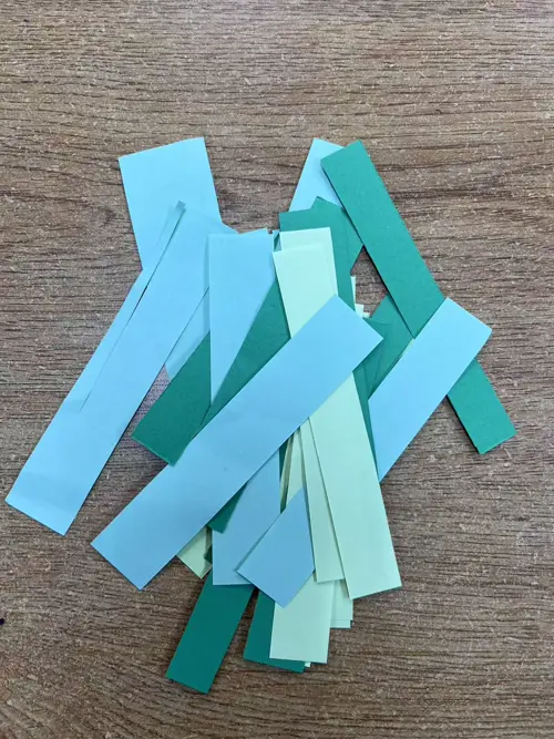 surface. Hand over the scissors and let your child cut the leaves into small, confetti-like